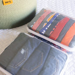 Generous size for bulkier items while still fitting neatly on shelves